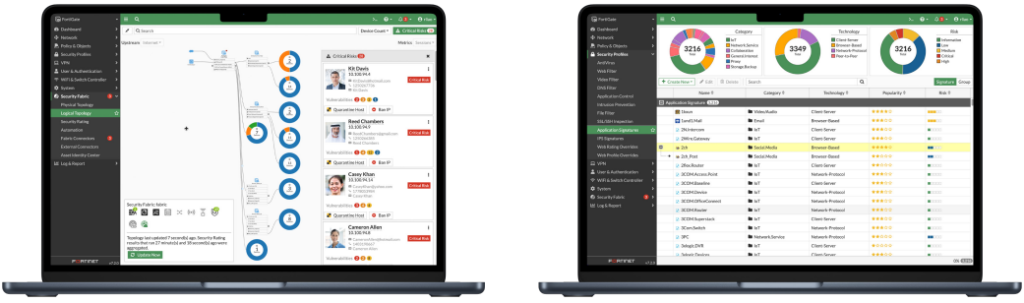 • Enterprise Security with consolidated AI / ML-powered FortiGuard Services.